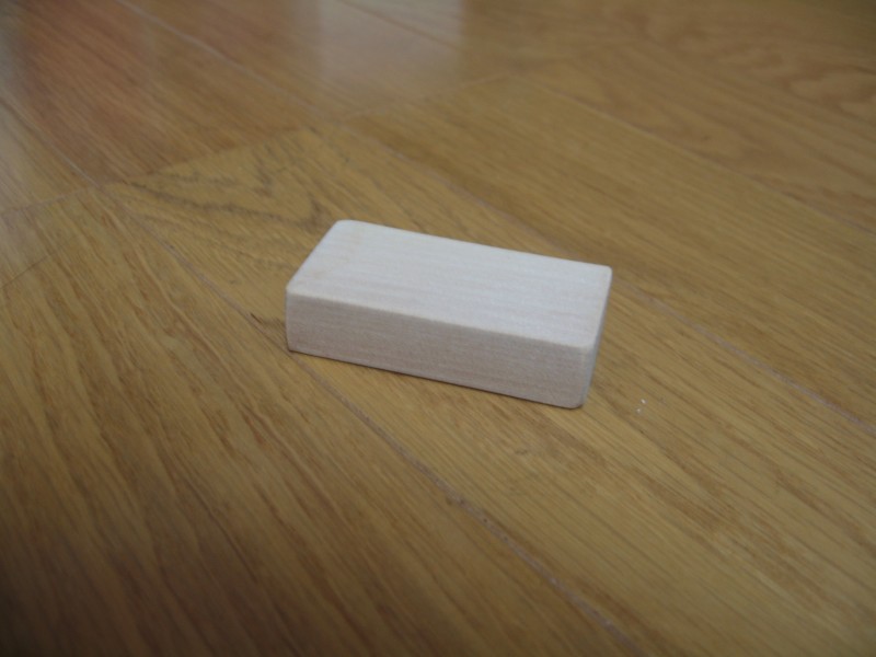 ダイソーで買った木片の一つをヤスリ掛けして角を丸くして、薄めたコーヒーを何度が塗って色を付けて