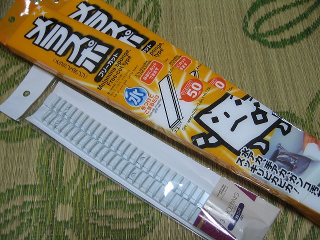 材料は100均のお掃除用メラニンスポンジとルーズリーフを閉じるやつ。