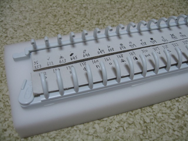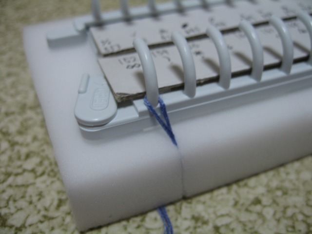 ステッチ記号ごとに糸を分けてかけておく道具。