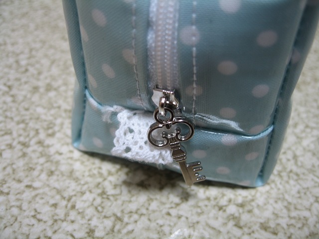 ファスナーはセリアで買った鍵のチャームがついたもの。