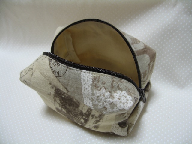 中はダンガリーのクリームっぽい色です。茶系の布に合わせるのに良い色だと思います。